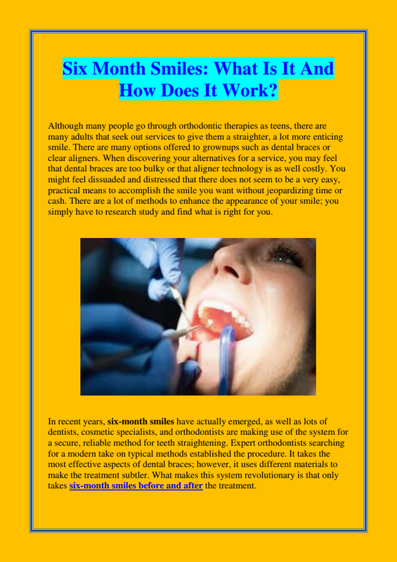 On the other hand there are many people that think of different procedures that are performed by the professionals; they even are much responsible for education that the patients and kids receive. While you can also ask the dentist to share the details of Six Month Smiles Before And After and also the regular trips to family dentist that is considered to be important for maintaining health of your mouth. On the other hand the much important and crucial thing that the person could do is performing the good practices for oral hygiene at your home. At clinic you may also get a view on the 6 Month Smile Cost during any of the semi-annual check-ups such doctors may also provide advice on how perfect it is to brush and floss regularly. They even show correct set of the dietary practices that could help to simply reduce the plaque as well as decay. In various different instances they may also offer advice which oral acre routine must get augmented by using the antiseptic mouthwash.